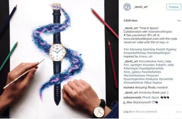 Instead of targeting celebrities to send his watches to, he specifically focused on reaching out to Instagram creators with a targeted niche and a follower amount of close to 5k. In exchange for content, influencers were gifted a free watch. Working with a variety of creators from painters to fashion models, allowed him to create a content factory that reached several niche audiences. As of today, the #DWPickoftheDay has accumulated 62,000 posts on Instagram.